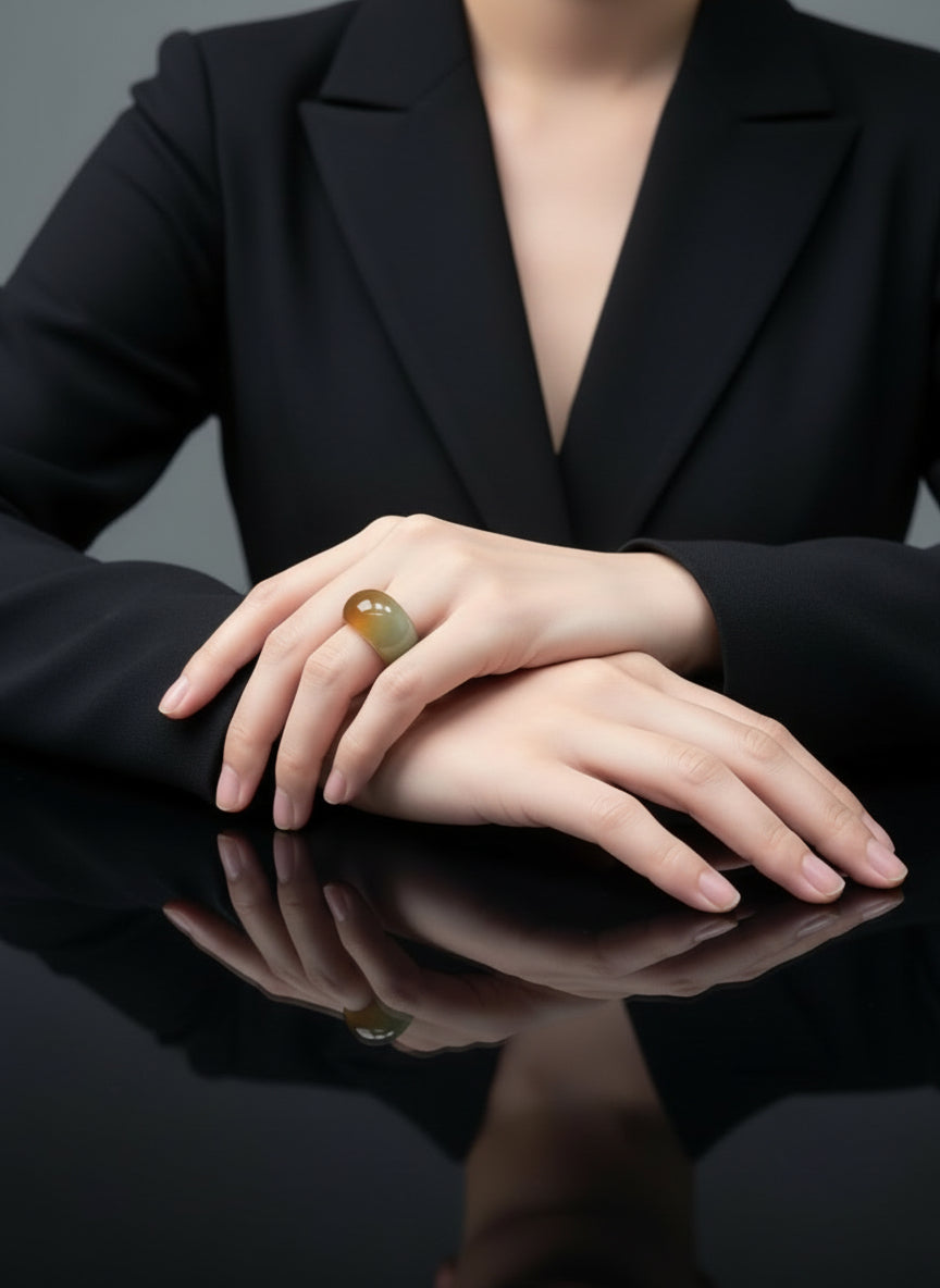 Bitte beachten: Jeder Ring wird aus natürlicher Jade gefertigt, daher gehören individuelle Maserungen und Farbnuancen zu seiner natürlichen Schönheit. Kein Stück gleicht dem anderen — Ihr Ring ist ein echtes Unikat.