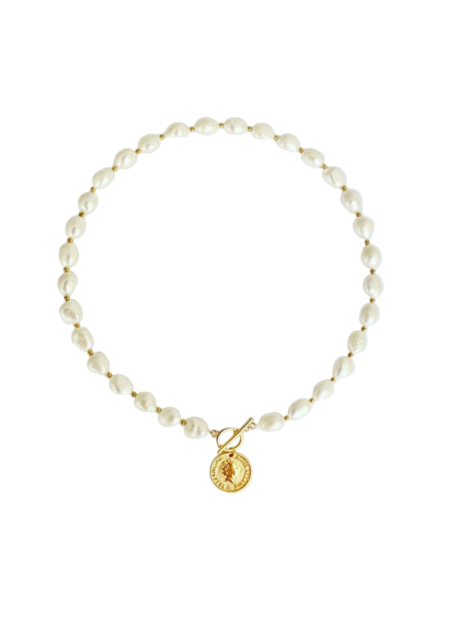 Queen's Coin – Barockperlenkette mit Goldanhänger