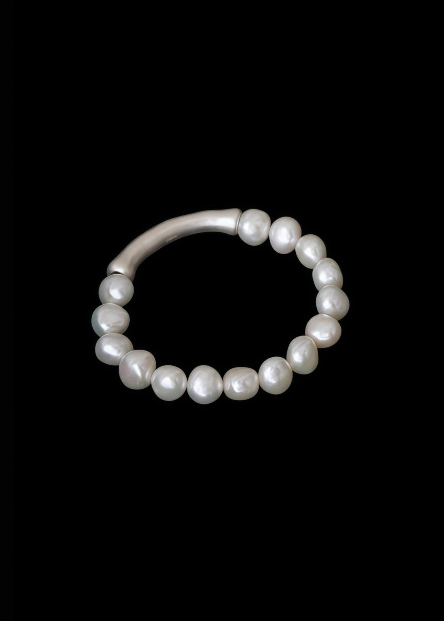 Unregelmäßige Perlen kombiniert mit einem eleganten silbernen Ornament — entworfen für einen raffinierten und stilvollen Look.